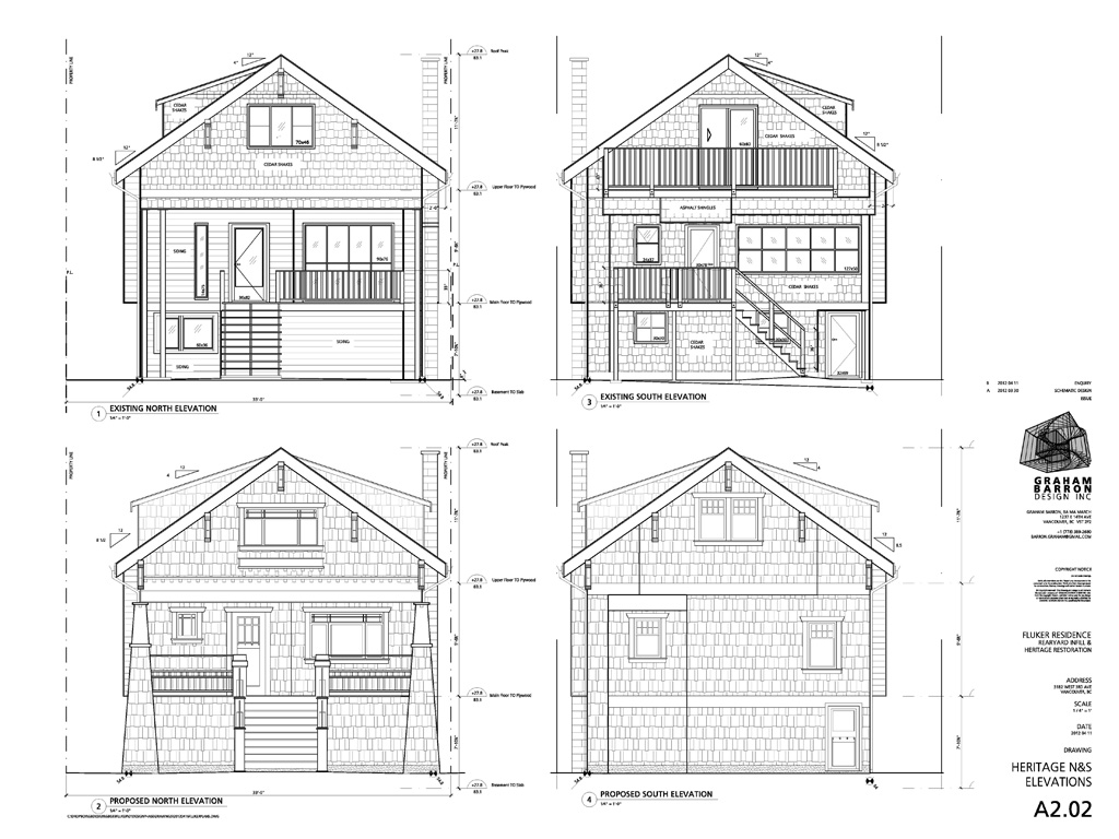 This project restores a Vancouver heritage house to its original street facade. The craftsman style house was one of many built by Cook & Hawkins in Kitsilano during the inter-war period. The restoration of this house is intended to make it possible to gain a relaxation that allows the construction of a new, stratifiable rear yard infill house.